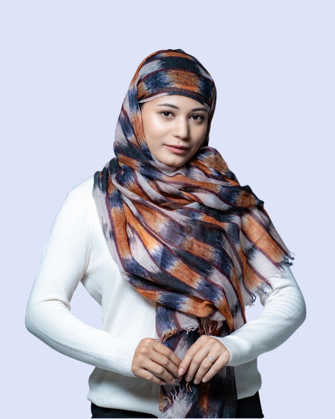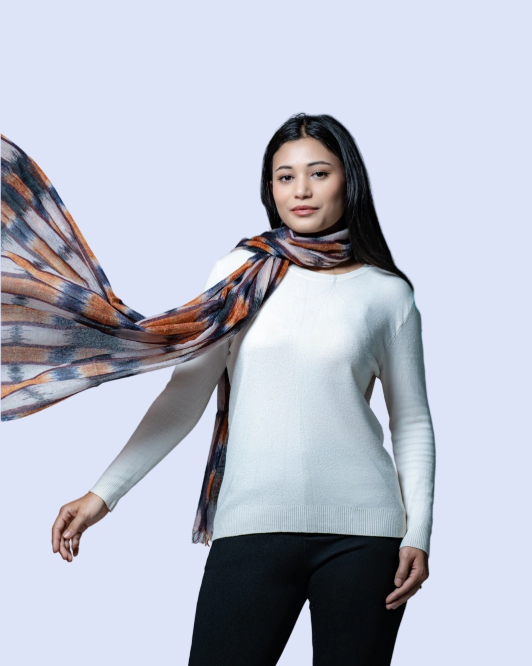 Crafted with a striking black and rust geometric design, this shawl offers a soft, lightweight, and versatile drape. Perfect as a wrap, stole, or statement accessory, it adds a touch of contemporary elegance to both formal and everyday outfits.
