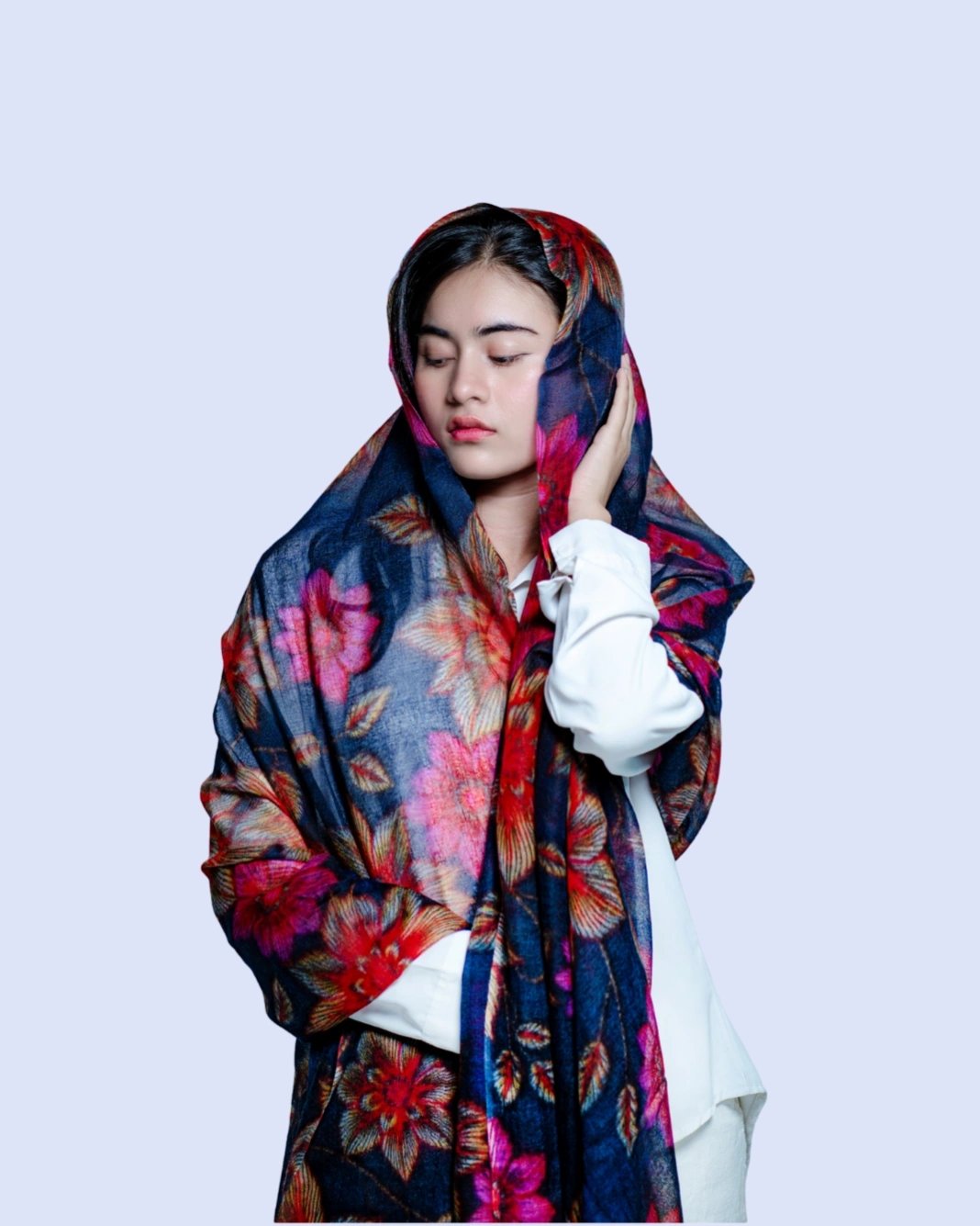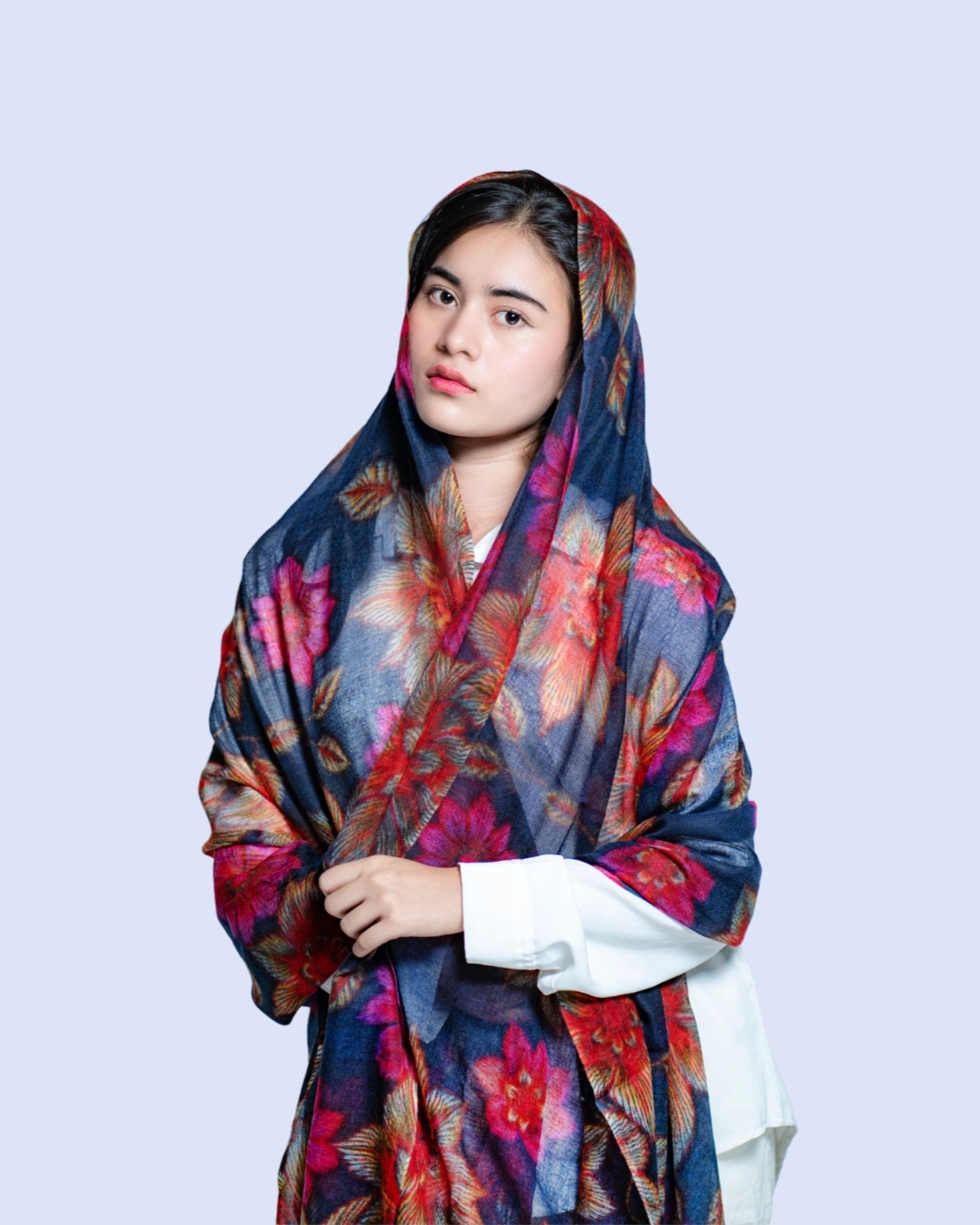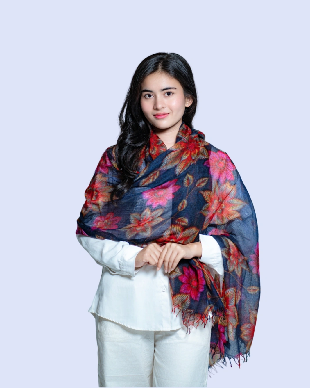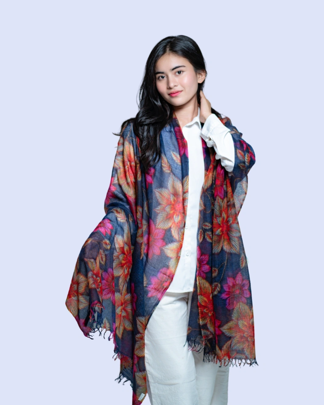Crafted from 100% pure cashmere, this shawl features a striking blossom print that adds a touch of contemporary elegance to any outfit. Soft, lightweight, and breathable, it drapes effortlessly as a wrap, stole, or statement scarf, making it perfect for both formal occasions and refined everyday wear.