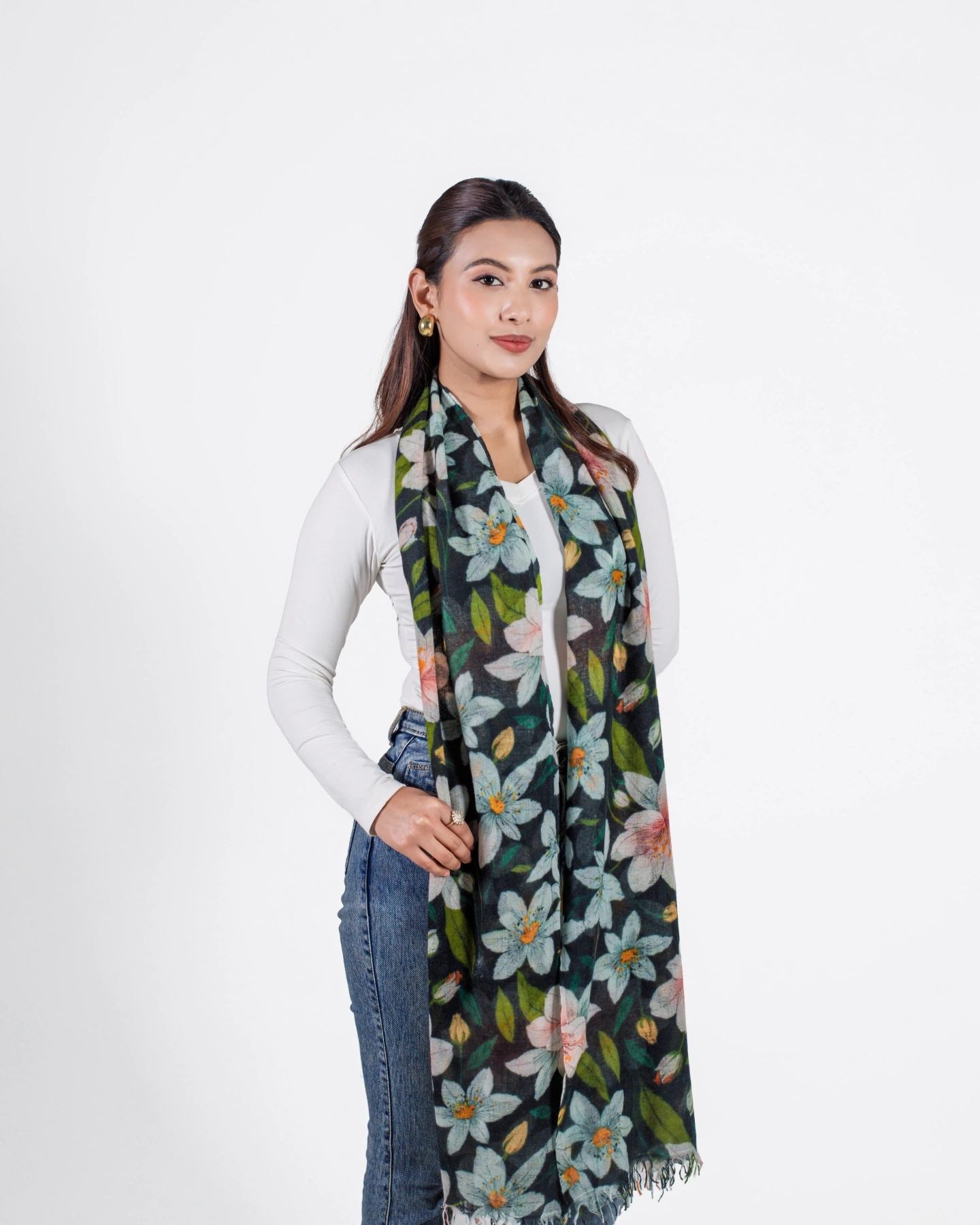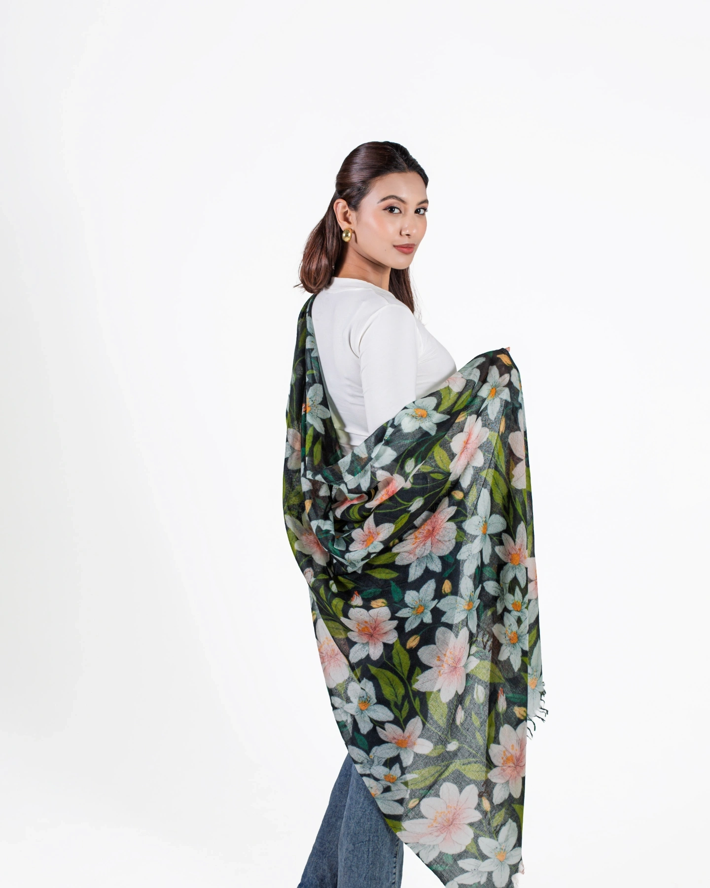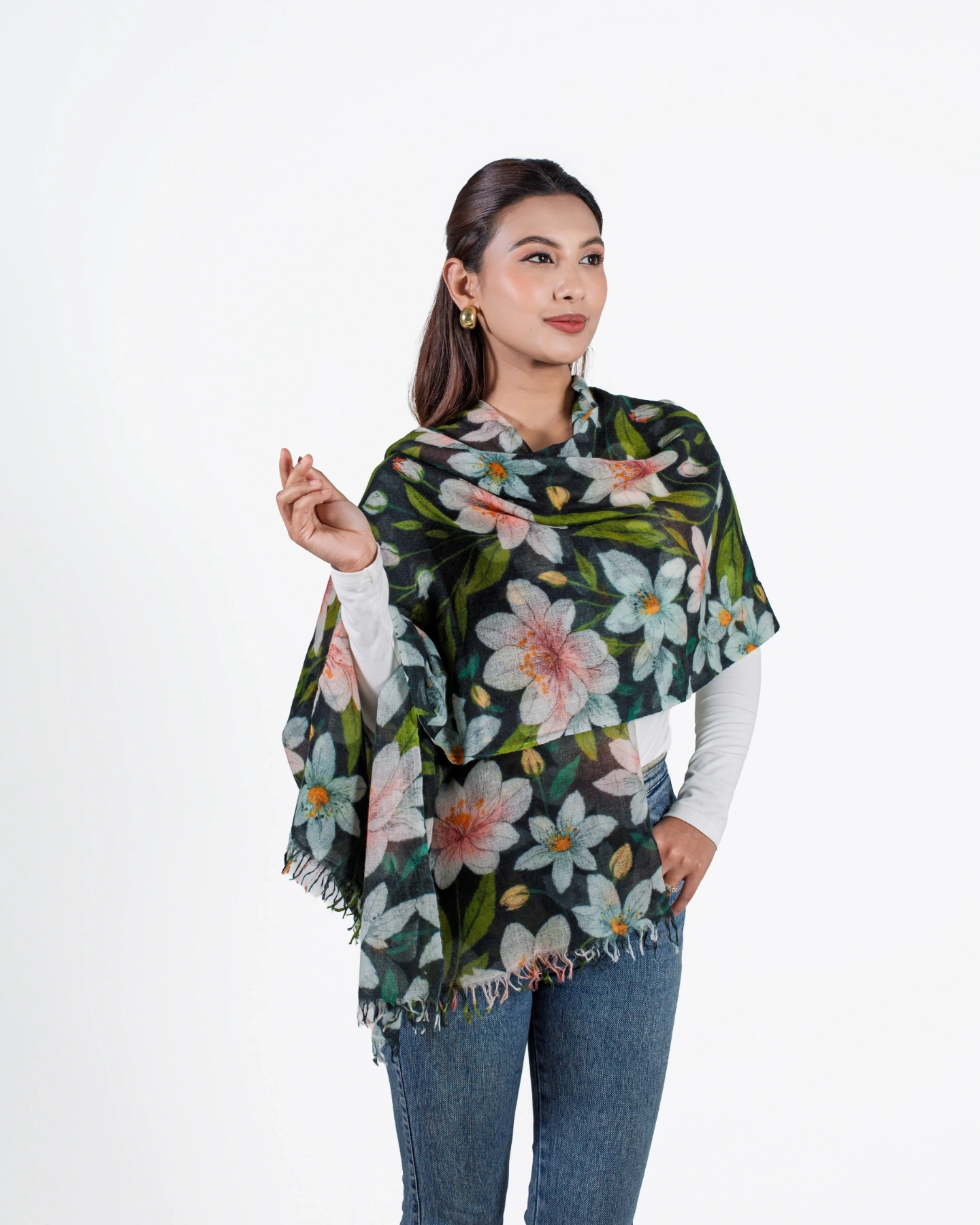 Made from 100% pure cashmere, the Exotic Blue Floral Cashmere Shawl showcases a striking blue floral pattern that blends timeless elegance with contemporary charm. Exceptionally soft, lightweight, and breathable, it offers a graceful drape that enhances both formal ensembles and everyday outfits.