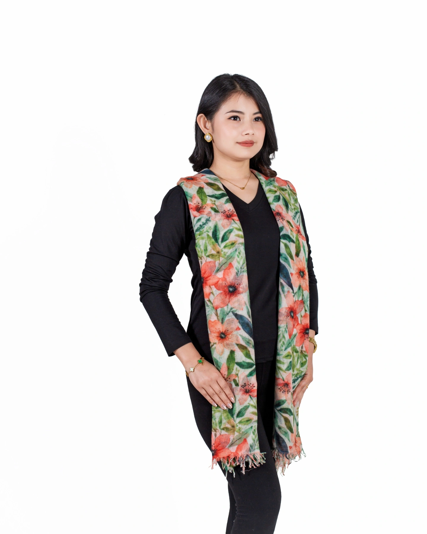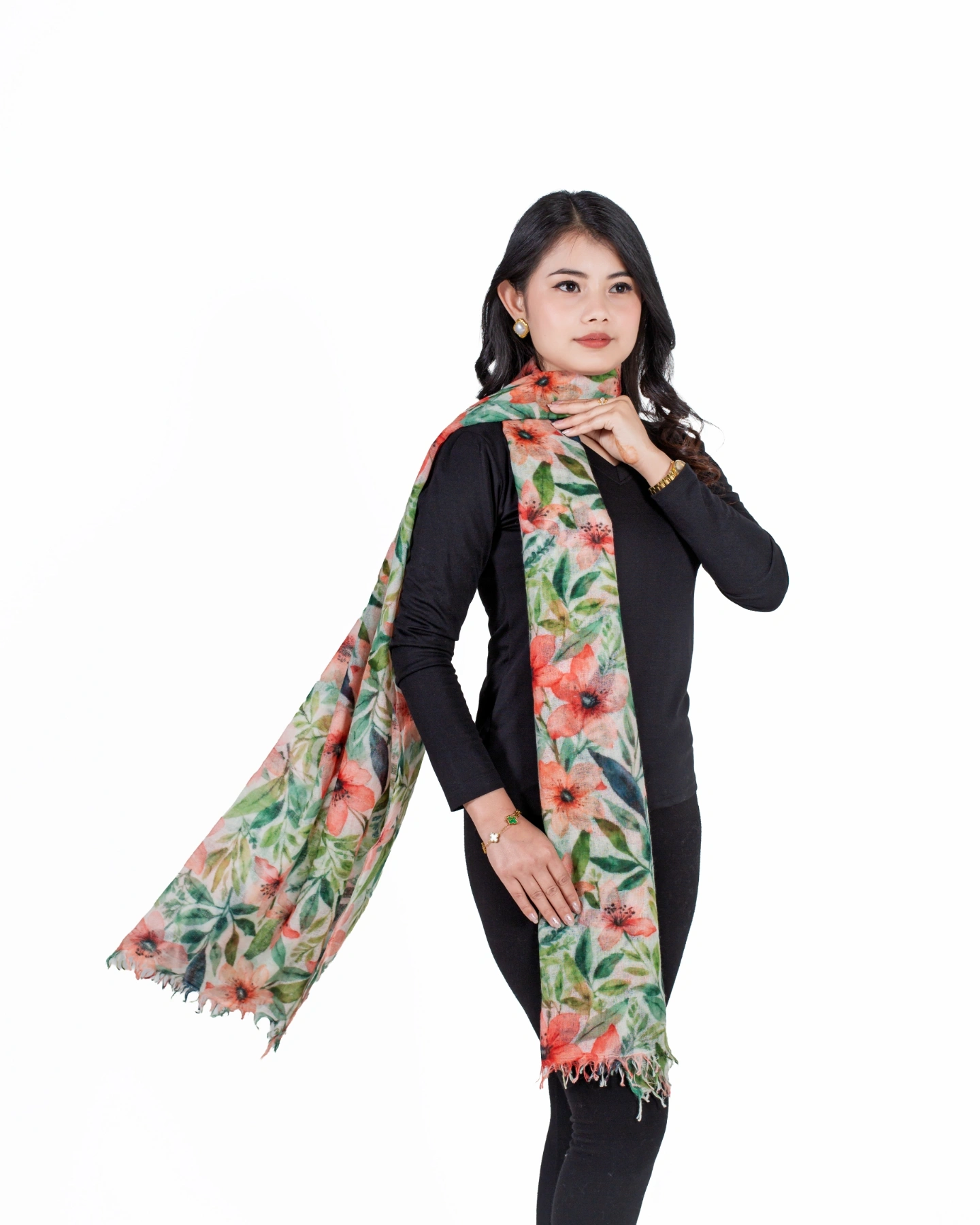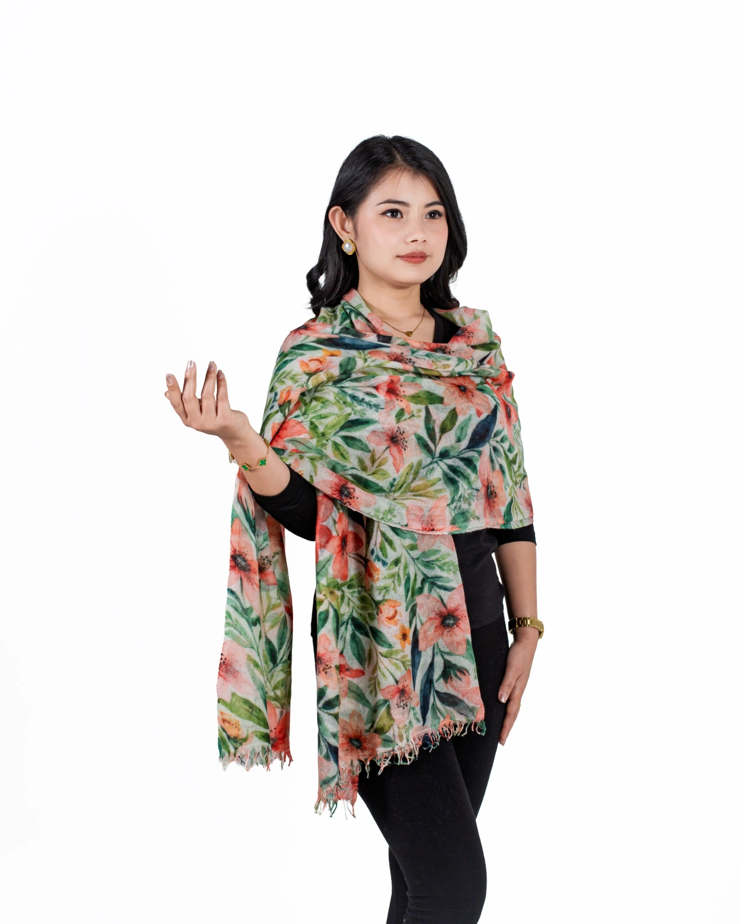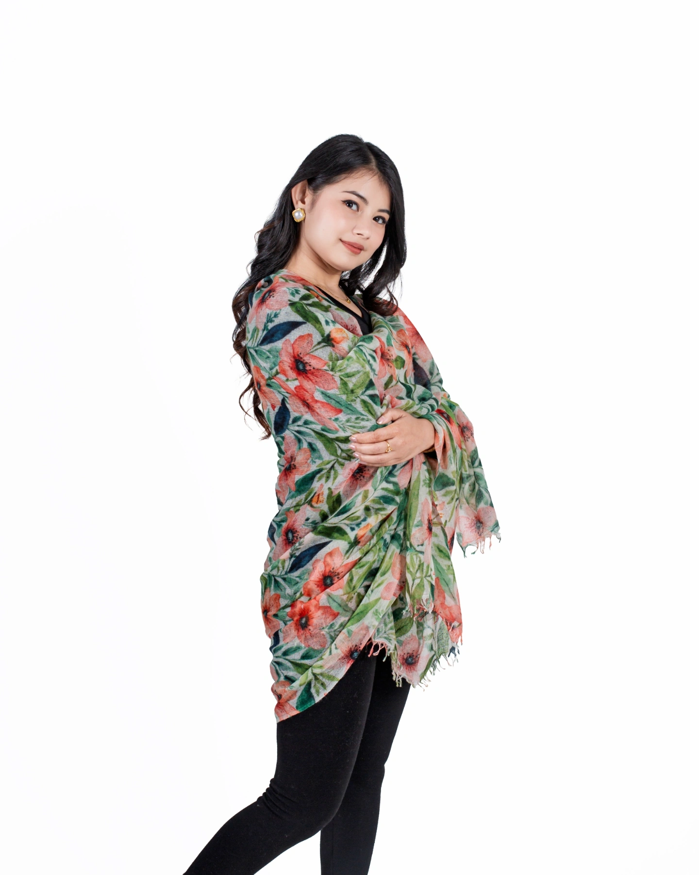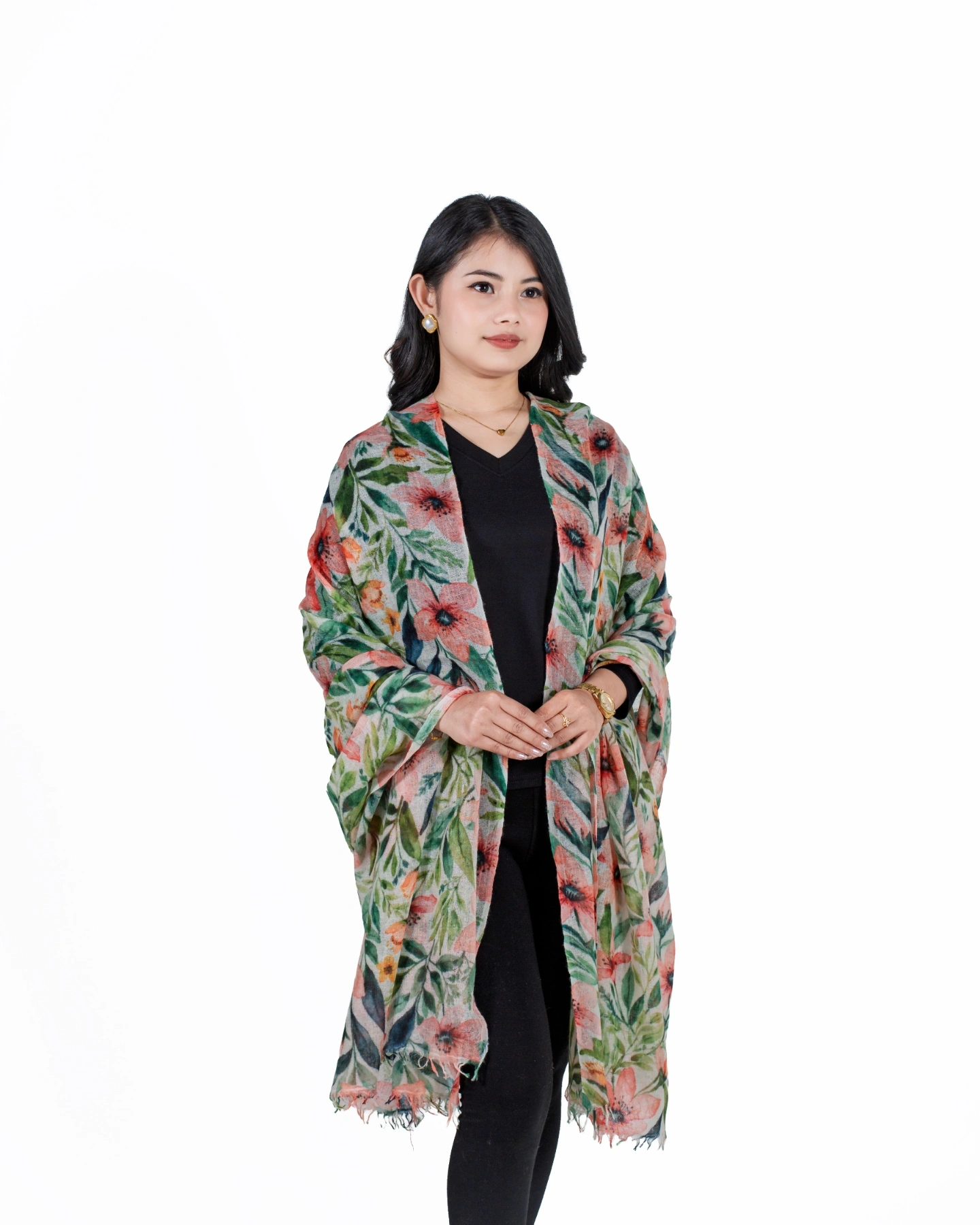 Crafted from 100% pure cashmere, the Floral Serenity Shawl features a delicate floral design that exudes grace and elegance. Soft, lightweight, and breathable, it drapes beautifully as a shawl, wrap, or statement accessory, perfect for refined everyday wear and special occasions.