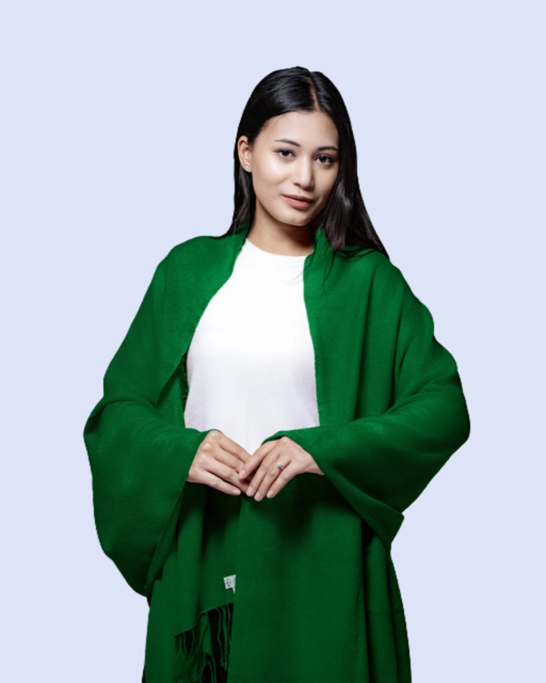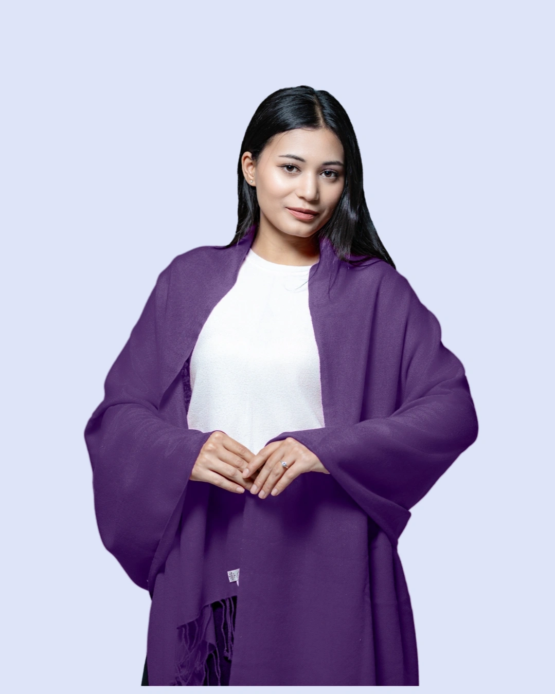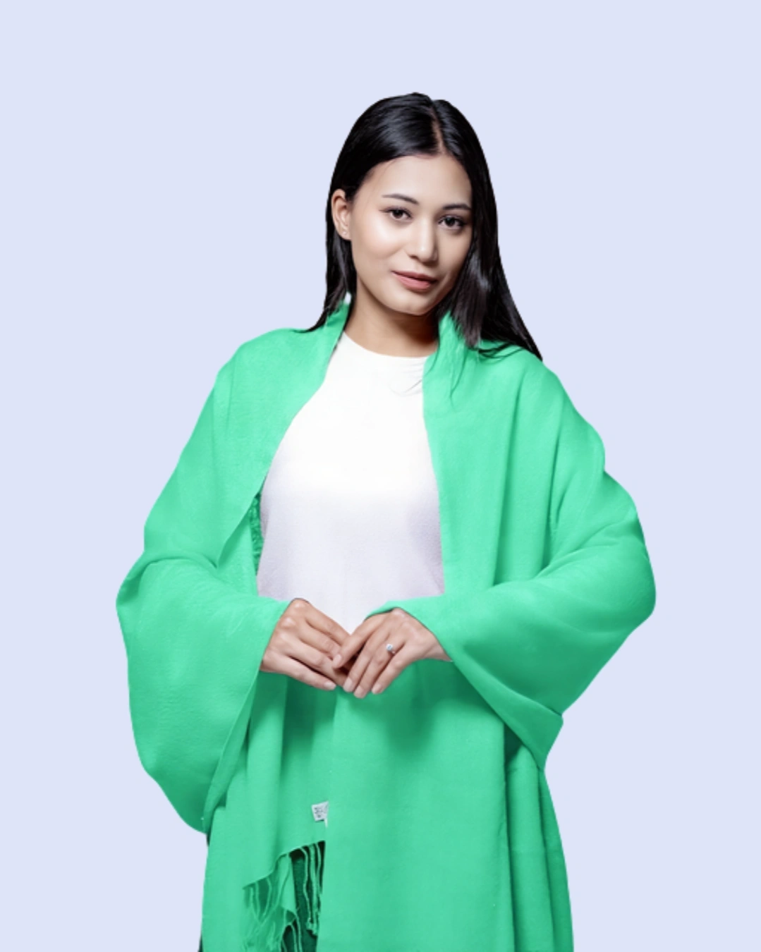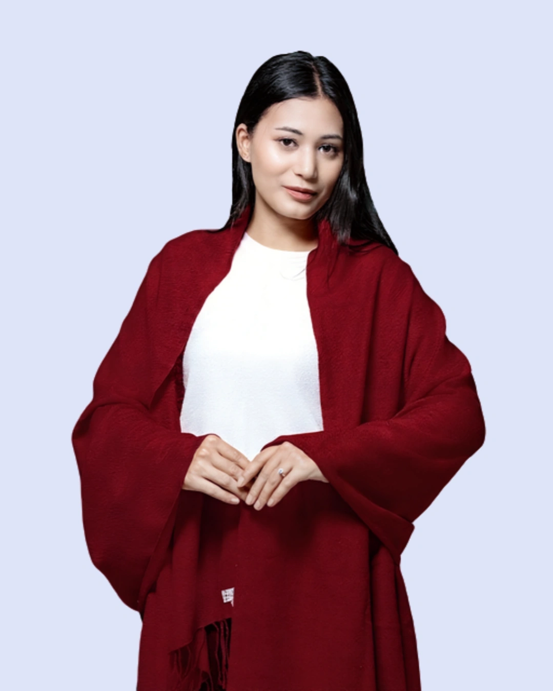 The finely woven fabric provides gentle insulation while remaining breathable, allowing for year-round wear. Its smooth texture, rich color depth, and delicately finished edges reflect timeless sophistication, making it an essential piece for any discerning wardrobe. Whether layered over an evening ensemble or styled casually for daytime elegance, this shawl elevates any outfit with a statement of heritage craftsmanship and understated luxury.