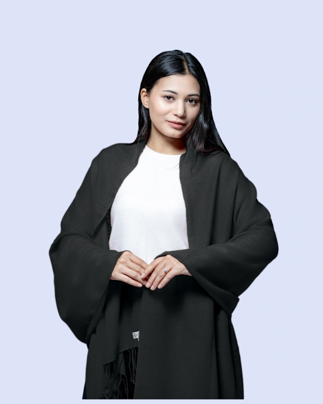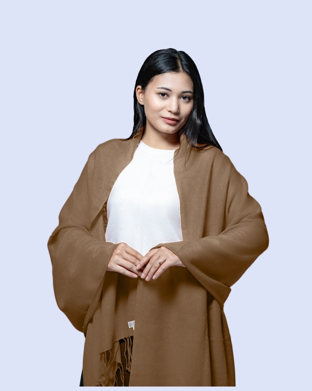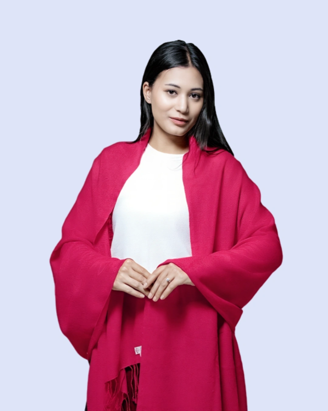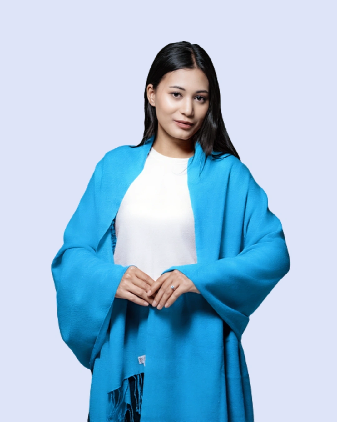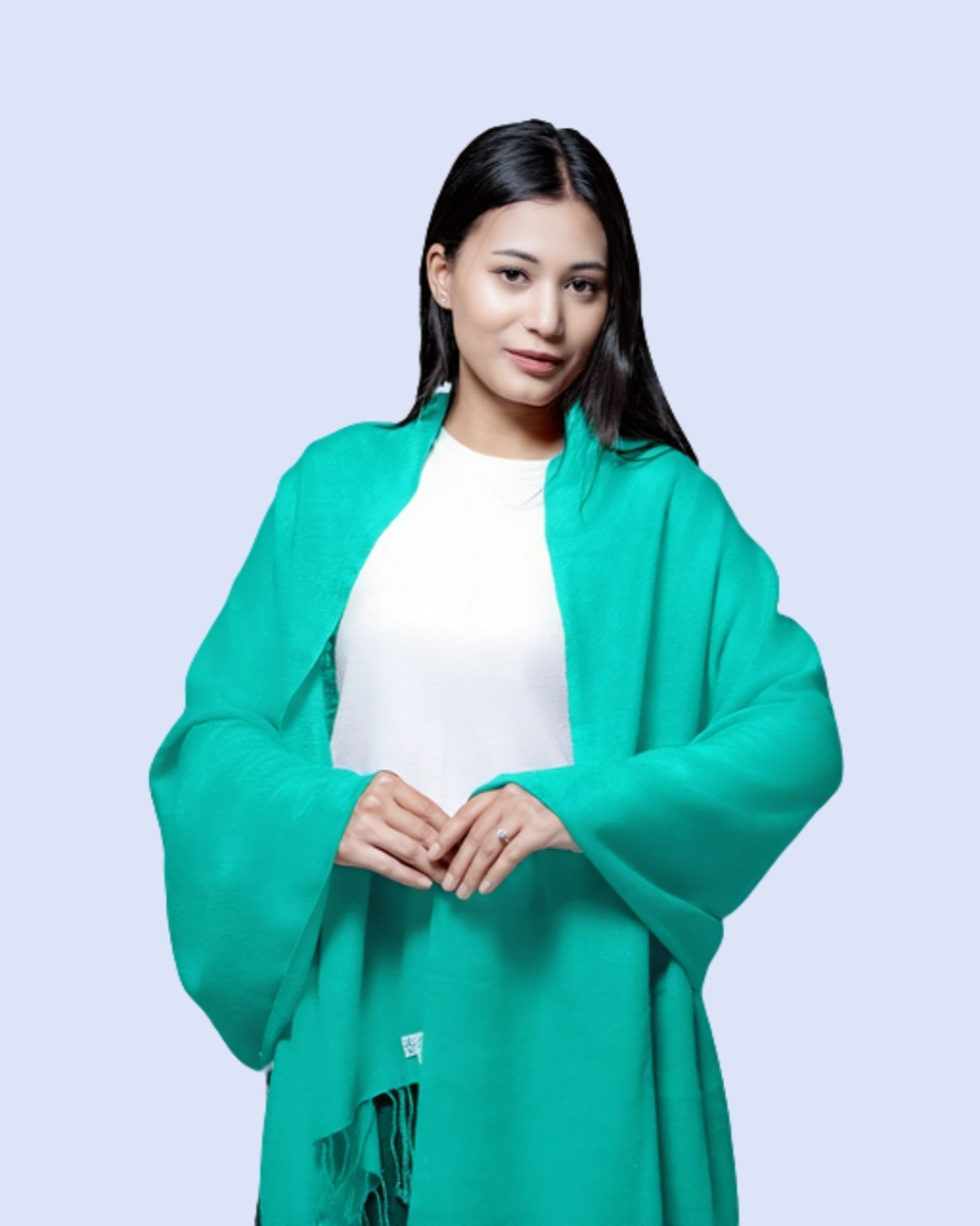 The finely woven fabric provides gentle insulation while remaining breathable, allowing for year-round wear. Its smooth texture, rich color depth, and delicately finished edges reflect timeless sophistication, making it an essential piece for any discerning wardrobe. Whether layered over an evening ensemble or styled casually for daytime elegance, this shawl elevates any outfit with a statement of heritage craftsmanship and understated luxury.