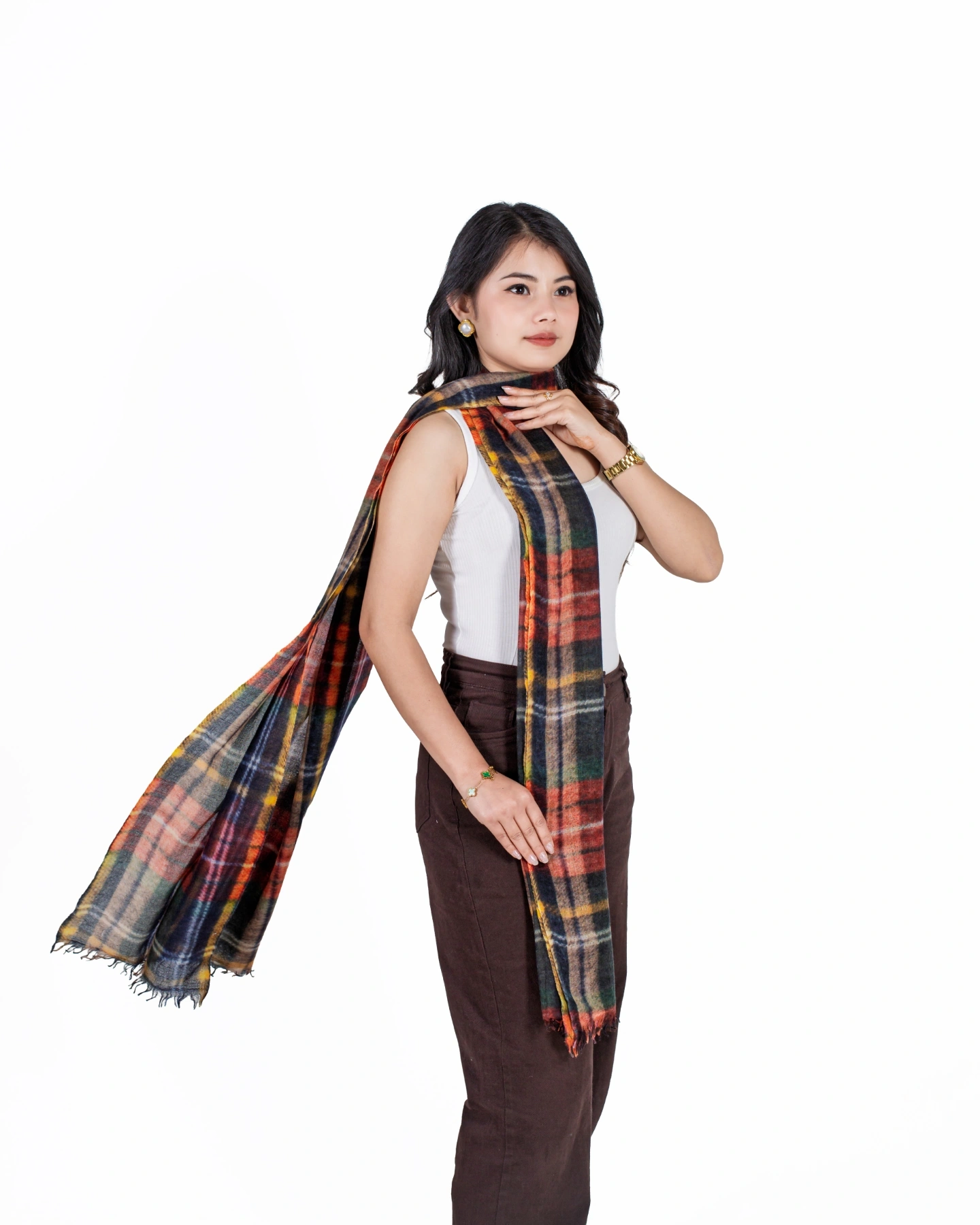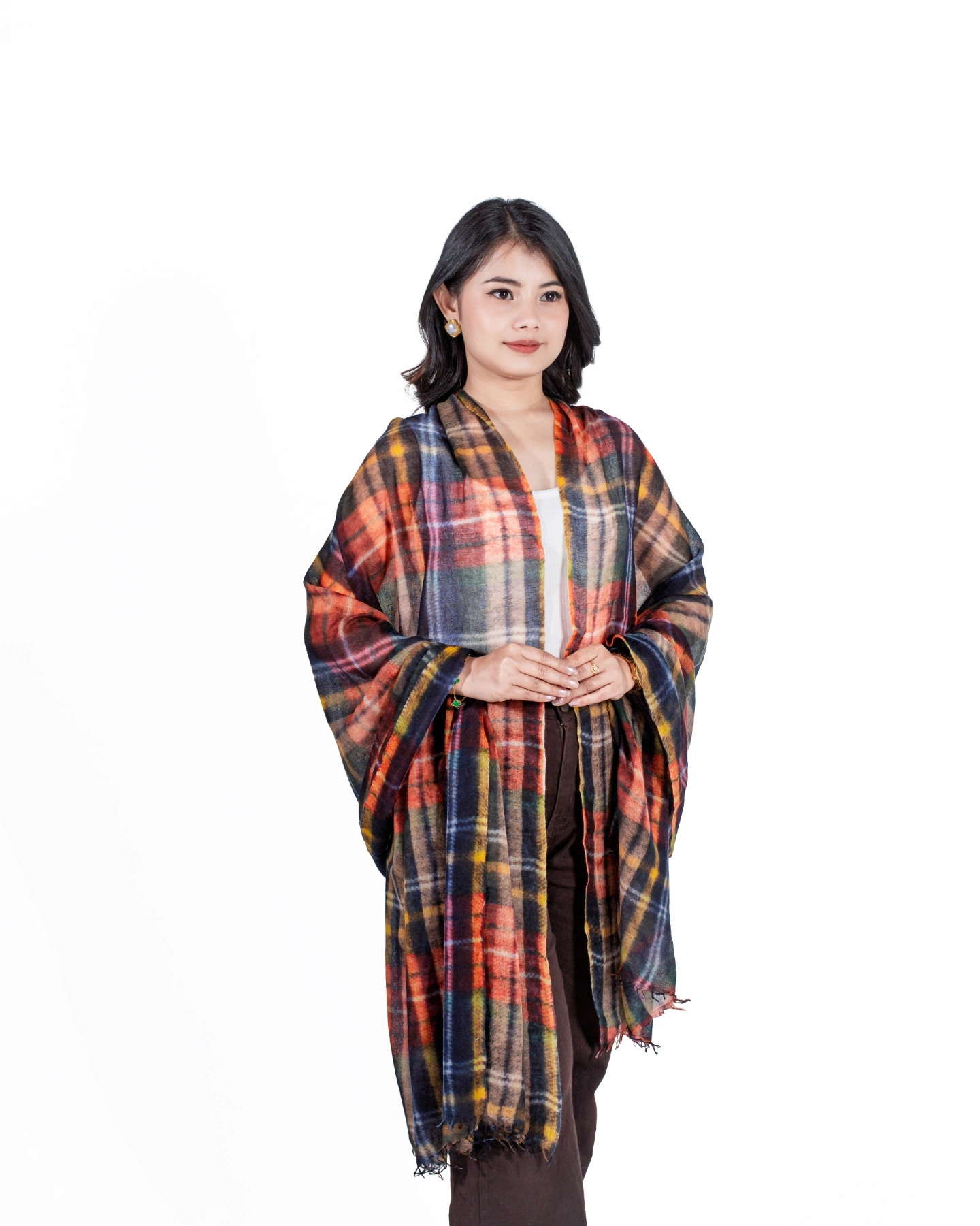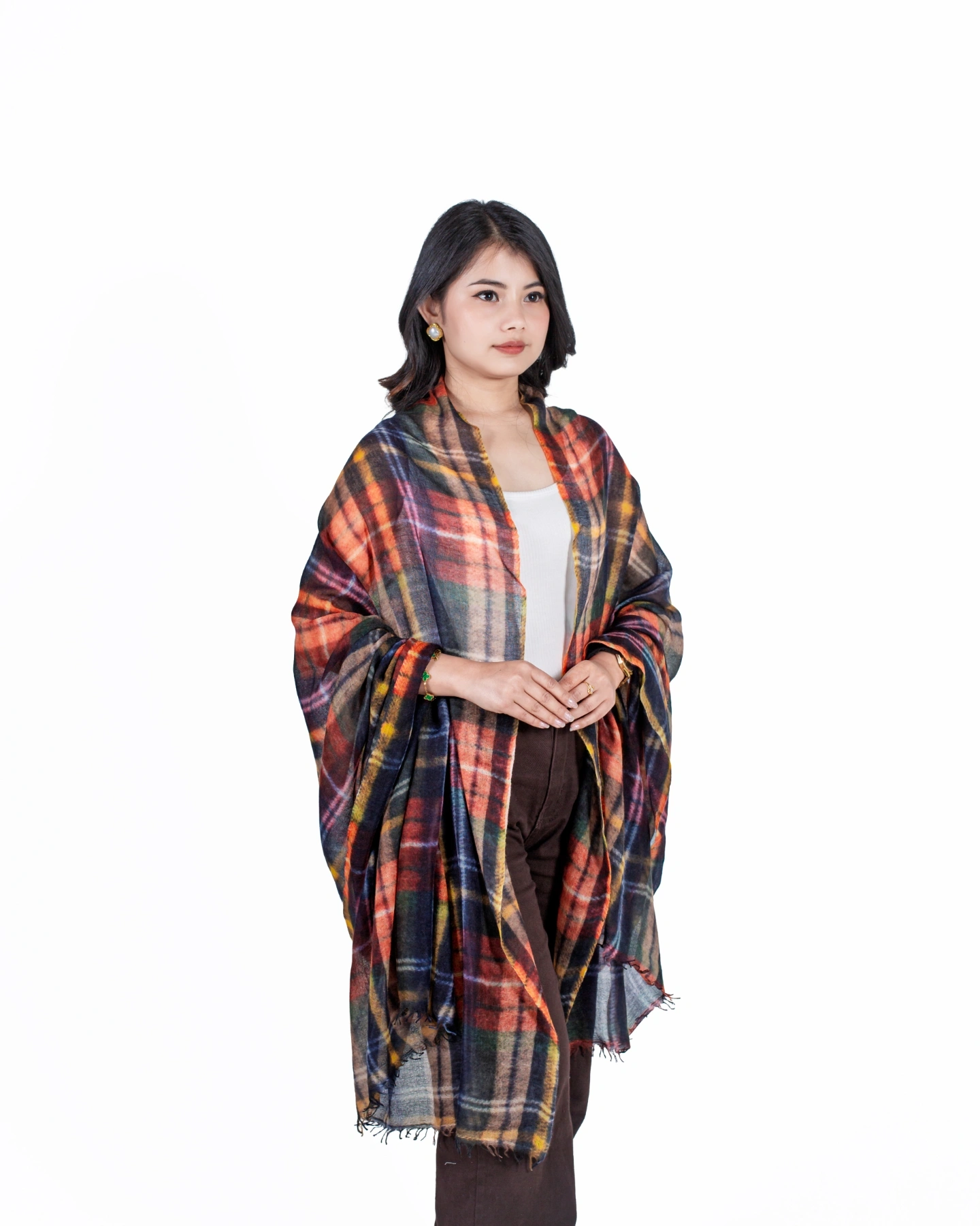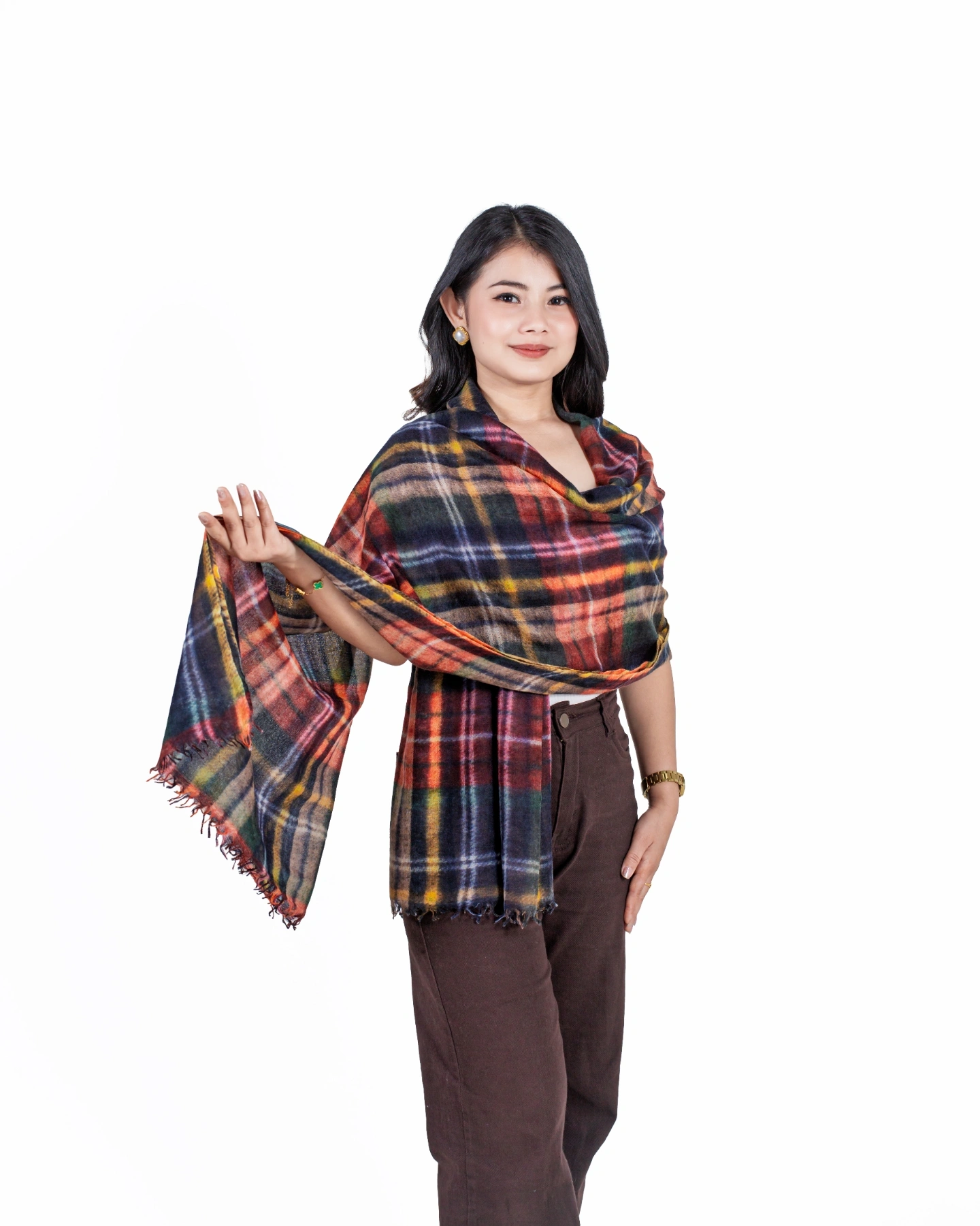 Whether paired with everyday outfits or special occasion attire, this multicolored stole adds depth, warmth, and effortless charm to any ensemble.