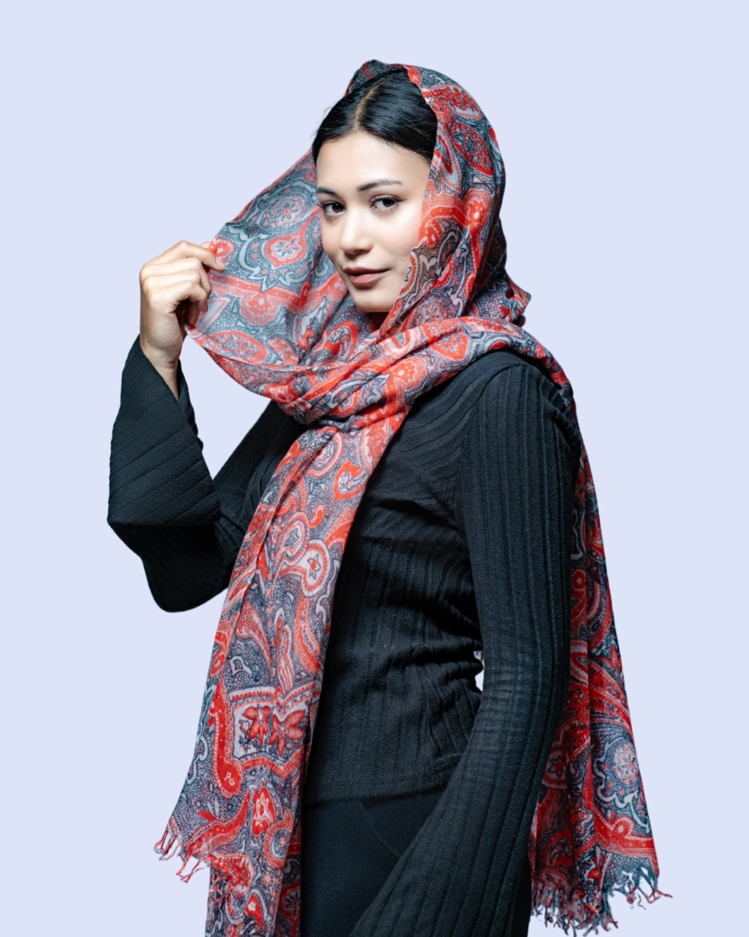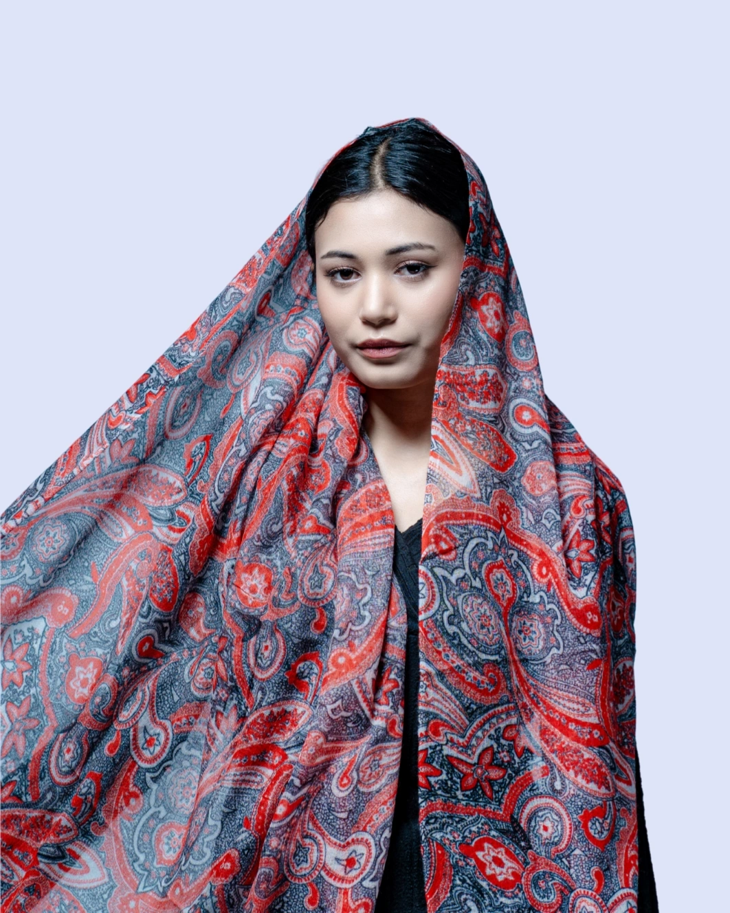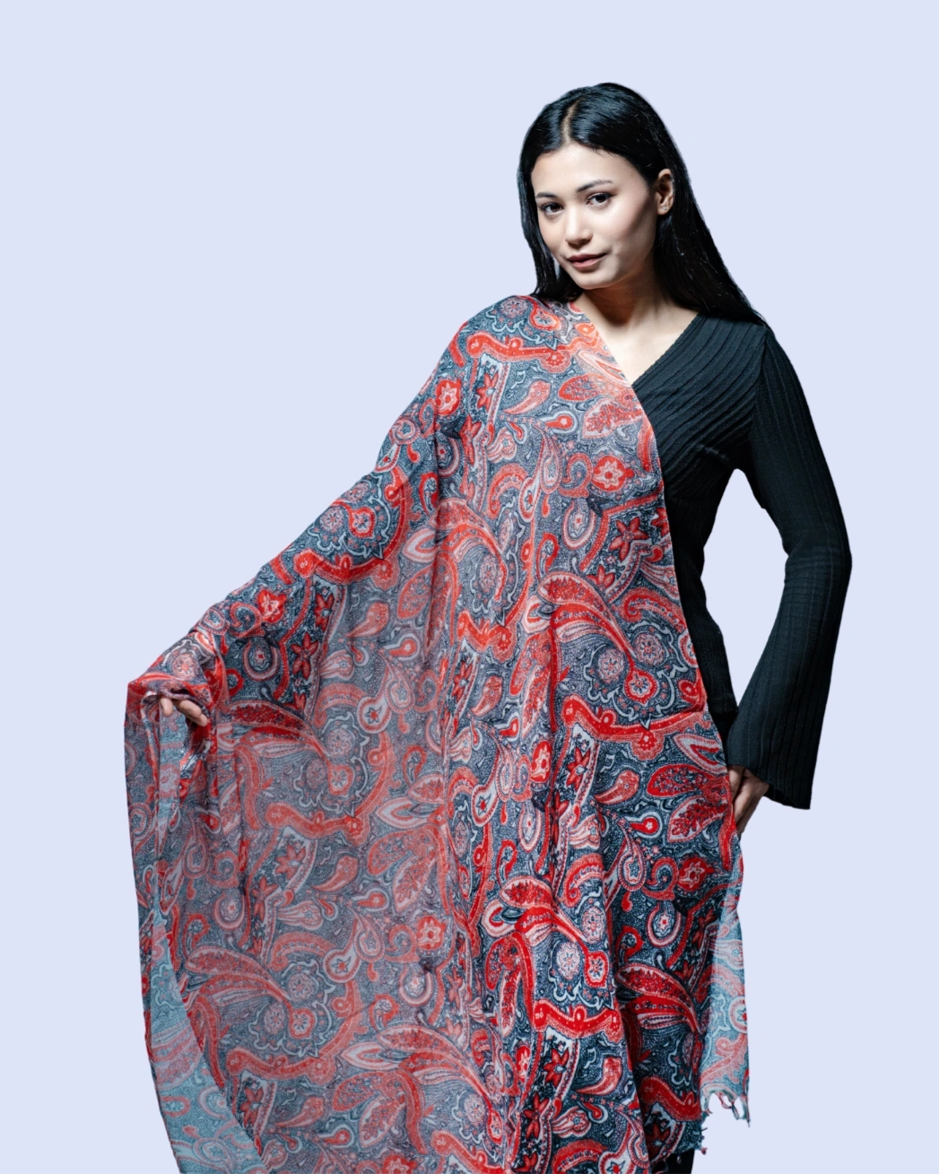 Featuring the iconic paisley motif, the intricate pattern adds a touch of heritage charm and refined sophistication. The ultra-smooth texture and fluid drape wrap effortlessly around the shoulders, enhancing both traditional attire and contemporary outfits with graceful ease.